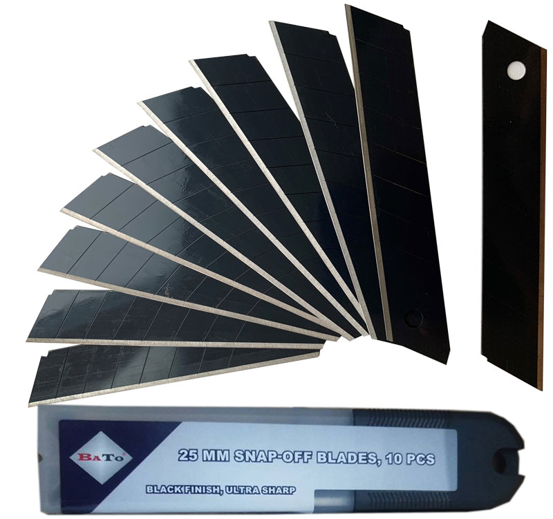 BATO Knivblade bræk-af 25 mm. Black Finish ultra skarp (pk. á 10stk.)