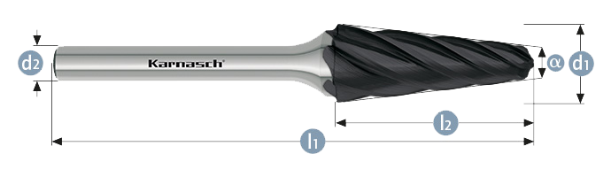 Karnasch HM Rotorfræser Blacktec Form L Ø16x33 HP7 ALU 6mm Skaft